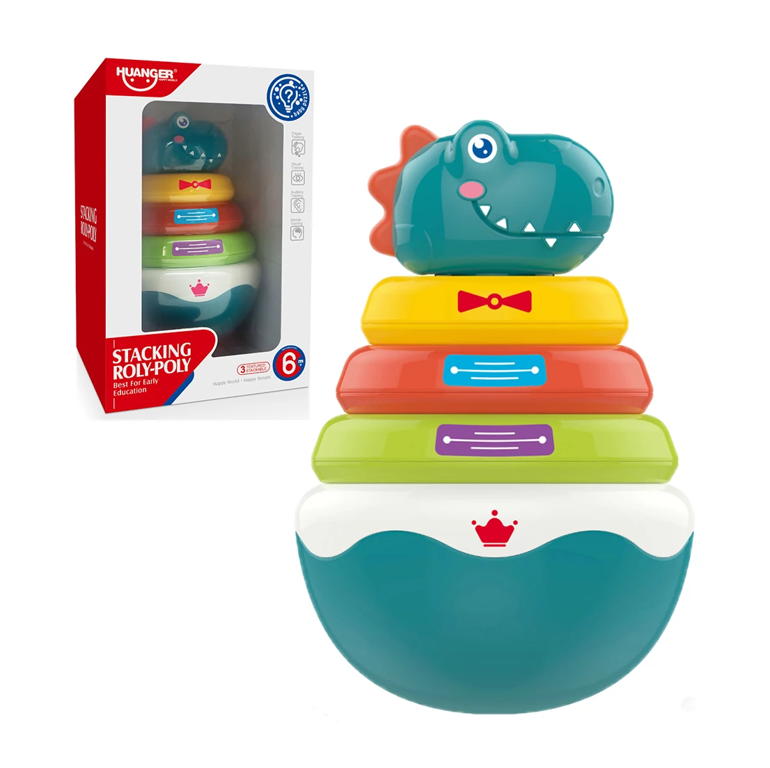 A toronyépítő játék tetején egy dinoszaurusz fej található, amely még izgalmasabbá és szórakoztatóbbá teszi a játékot a gyermekek számára. A dinoszaurusz fej a játék központi részét képezi, és életre kelti a játékot azzal, hogy egy olyan témát kínál, amely vonzó és érdekes a kicsik számára.