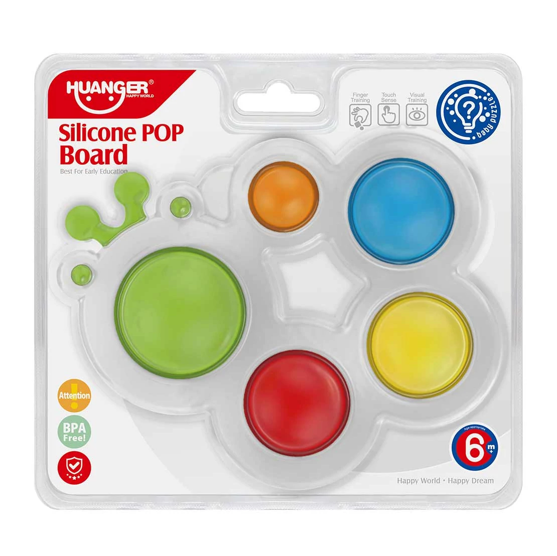 Fedezd fel a Happy World Pop It! Nyugtató Hernyó Pajti készségfejlesztő bébijátékot, amely a legfiatalabb korosztálynak készült, hogy játékosan ismerkedjenek meg a világgal. Ez a vidám, hernyó formájú játék BPA-mentes szilikonból készült, ami biztonságos a babák számára, és egyben puha tapintású, ami ideális az érzékszervi felfedezésre. A világos, élénk színű "pop" buborékokat megnyomva a baba hallásának és tapintásának finomításán kívül a színekkel is ismerkedhet. A játék megfelelő méretű, hogy a kicsik könnyen meg tudják fogni, és mivel könnyen tisztítható, akár utazás közben is remek szórakozás lehet.