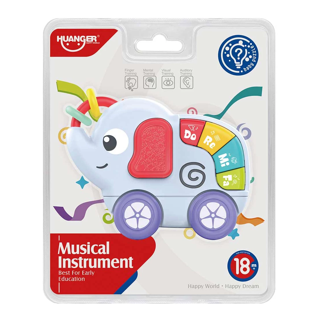 A Happy World: Szolmizáló elefánt pajti egy készségfejlesztő bébijáték, mely a zenei hangok világába vezeti be a legkisebbeket. A játék elefánt formájú, ami barátságos arcának és vidám színeinek köszönhetően rögtön felkelti a gyerekek érdeklődését. A játékelefánt oldalán színes, szolmizációs gombok találhatóak, melyekkel a gyerekek megtanulhatják a különböző zenei hangokat és fejleszthetik a hallási készségeiket.
