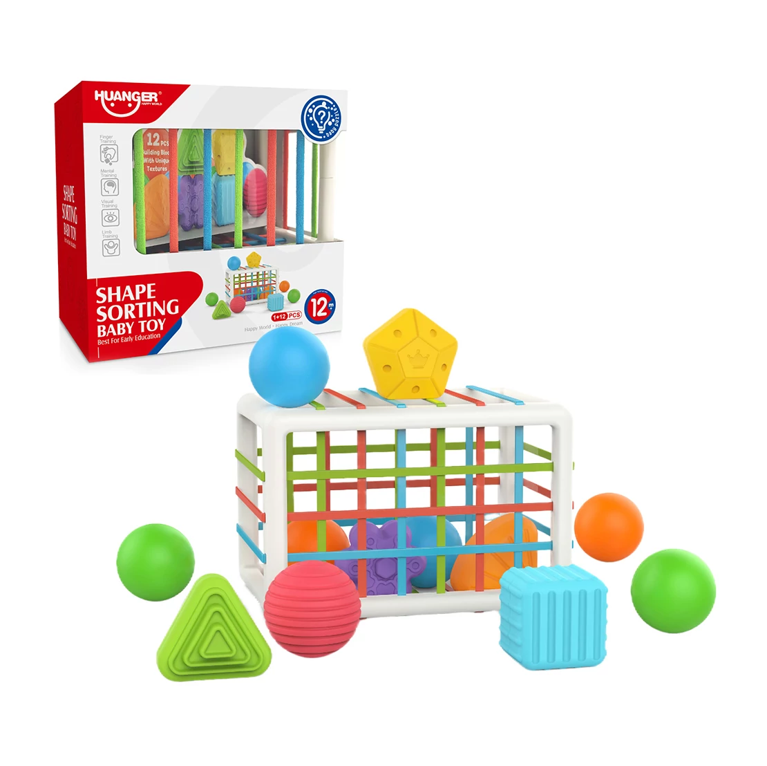A játékhoz összesen 12 különböző forma tartozik, melyeknek eltérő a színe, a tapintása és a mérete is. A feladat az, hogy ezeket a formákat megfelelően illesszük be a téglalap alakú keretbe a megfelelő nyílásokon keresztül. Ez a játék nemcsak a kézügyességet és a finommotoros készségeket fejleszti, hanem segíti a gyerekeket a színek és formák felismerésében is.