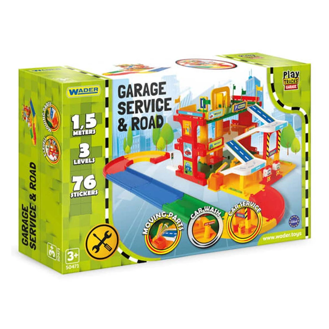 A Háromszintes szervizgarázs úttal és kiegészítőkkel izgalmas, részletgazdag játékszett, amely igazi városi kalandokat varázsol a gyerekszobába. A színes, masszív kialakítású garázs három szinten kínál felfedeznivalót: parkolóhelyek, szervizrészleg és autómosó is helyet kapott benne, így a kisautók teljes körű „kiszolgálásban” részesülhetnek.