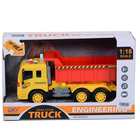 Szerezz be gyermeked számára egy nagy méretű háromtengelyes dömpert amely piros színű, borítható platóval rendelkezik és kiválóan felhasználható akár beltéren a játékváros építkezésein, akár a kerti homokozóban használva. A dömper fény és hang effektekkel egyaránt rendelkezik amely még magasabb szintre emelheti a játékélményt. Masszív strapabíró műanyag kasznijának és gördülékeny kerekeinek köszönhetően akár homokos és füves terepen is megállja a helyét. A fény és hang effektek a teherautó vezetőfülkéjén található gombok megnyomásával használhatók.
