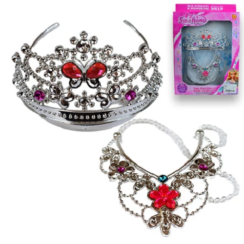 Egy nagyon különleges szett lehet most gyermekedé, melynek segítségével igazi hercegnő válhat belőle. A szettben csillogó, kövekkel kirakott korona található, mely nem maradhat le egy hercegnő hajából sem. Emellett természetesen még egy csodaszép nyakéket is tartalmaz a szett, mely szintén elengedhetetlennek mondható. A szetthez ezen kívül már csak egy szép hercegnő ruhára van szükség és kezdődhet is a bál, ahol biztosan ő lesz majd a legszebb. Keresd többi kiegészítőnket is, hogy teljes lehessen a szett.