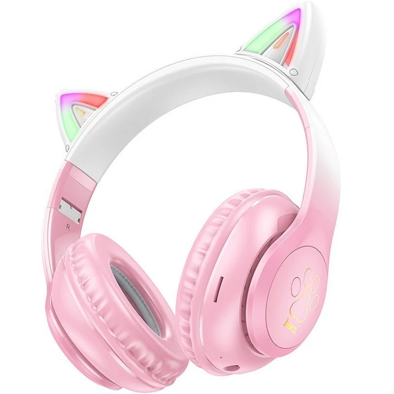 Hoco W42 vezeték nélküli fejhallgató macskafülekkel. Kiváló minőségű hangzást és zökkenőmentes híváskezelést biztosít. Tökéletes ajándék gyerekeknek.