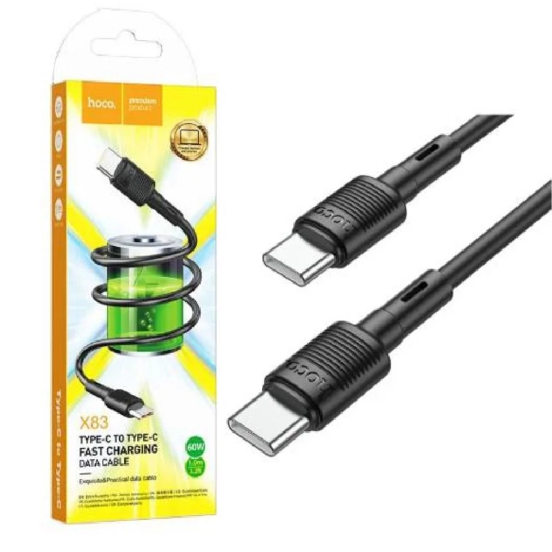 A Hoco Victory X83 kábel USB-C-USB-C csatlakozóval, támogatja a töltést és az adatátvitelt.