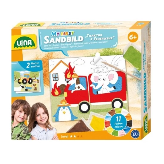 Különleges szórakozást nyújtanak anélkül, hogy akár a gyermek, akár a lakás összekoszolódna. Ki gondolná, hogy a homok színes is lehet? Pedig ebben a játékban éppen a sokféle színű homokkal készíthetőek színpompás képek. A homokszórós kép elkészítésének módja: Minden kép egy rajzból áll, ami egy előre kivágott fóliával letakarható. A gyermekek lehúzzák a fóliát, hogy az alul lévő enyvezett alap felszínre kerüljön. Erre az alapra szórják aztán a különböző színű finom homokot, ami azonnal hozzáragad, és teljesen befedi az enyvezett felületet, szép, intenzív színű részletekből álló, gazdag rajzolatú, finom képeket hozva létre.