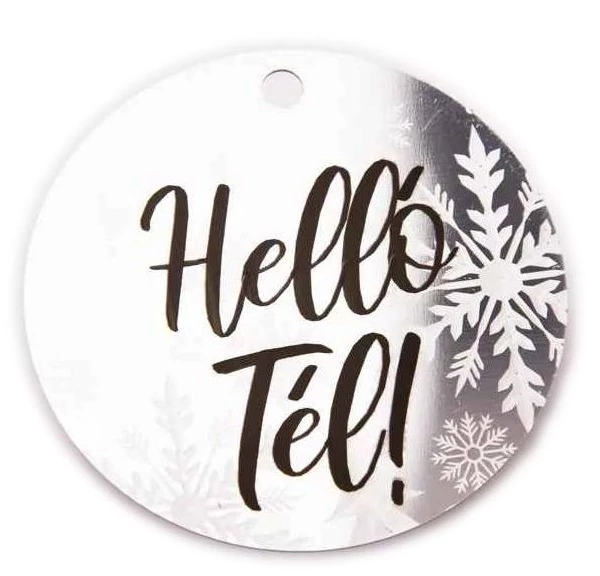 Hópihés "Helló Tél" gravírozott fényes acél tábla 5cm GFT6-03