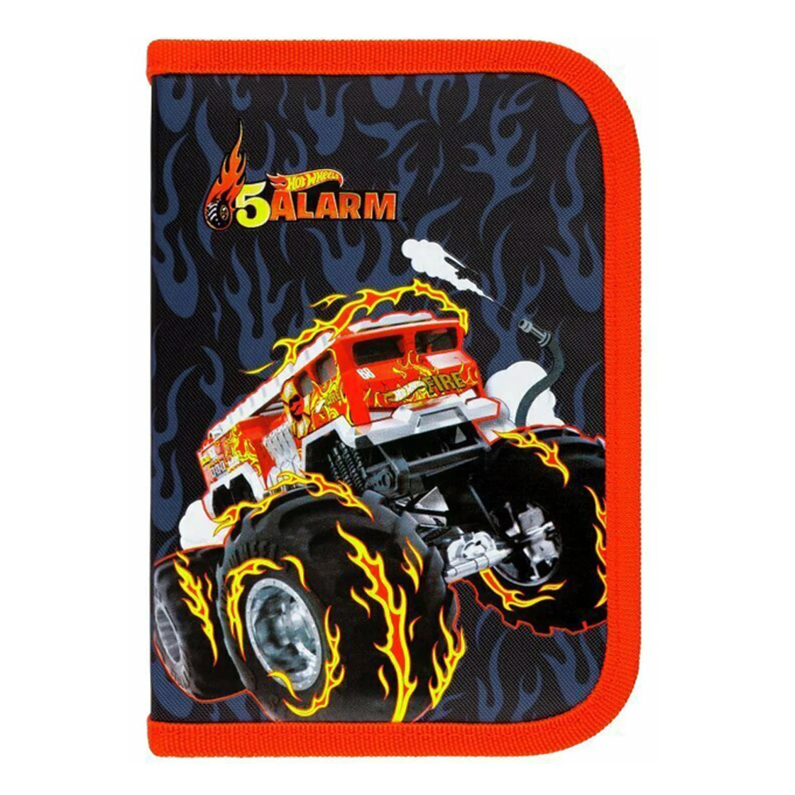 Ha kisautó-rajongó gyerkőcödnek keresel menő és praktikus tolltartót, a Hot Wheels 5 Alarm kihajtható tolltartó tökéletes választás lesz! A látványos borítót egy tüzes monster truck díszíti lángoló abroncsokkal, ami garantáltan elnyeri minden kis autóversenyző szívét. A fekete háttér és a piros lángmotívumok igazán vagány megjelenést kölcsönöznek, amit a kontrasztos piros cipzár és szegély tesz teljessé.