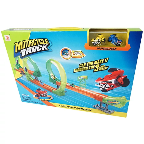 Ez a fantasztikus pálya remek lehetőséget nyújt arra, hogy lélegzetelállító mutatványokat hajts végre! A készletben megtalálod az összeállítható pályát, mely egy izgalmas hurkot is tartalmaz, valamint megtalálod a 2 db kis motort, amikkel végrehajthatóak a mutatványok. Egy rövid összeállítást követően már kész is a pálya, amin kezdődhet is a száguldás, akár az igazi kaszkadőr versenyeken. A csomagban található kismotorok több különböző színben, véletlenszerűen kerülnek kiszállításra.