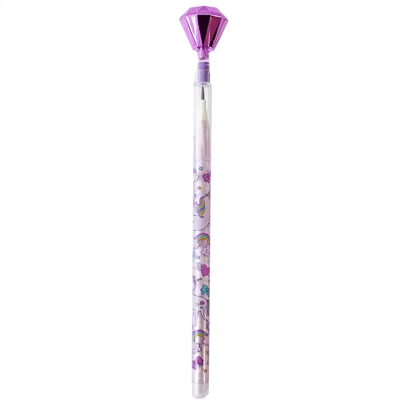 Ez a Bensia tolóbetétes ceruza igazi álom minden unikornisrajongó gyerek számára! A ceruza testét bájos, színes unikornisos minta díszíti, ami már önmagában is különlegessé teszi. De az igazi varázslat a ceruza tetején vár: egy csillogó, lila gyémántformájú dísz koronázza meg ezt a mesebeli írószert, amitől minden kis kézben hercegnőnek vagy unikornislovas kalandornak érezheti magát. A tolóbetétes rendszer lehetővé teszi, hogy hegyezés nélkül, egyszerűen és gyorsan használható legyen – így a ceruza mindig készen áll a jegyzetelésre, rajzolásra vagy álomvilágok megörökítésére. A Bensia ceruza nemcsak praktikus, hanem kreatív és inspiráló is, amivel a tanulás és az alkotás igazi öröm lesz a gyerekeknek.