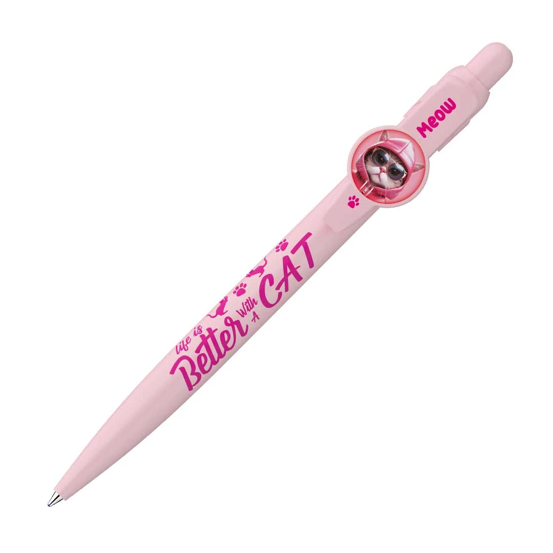 Ez a cicás golyóstoll pasztell rózsaszínben tökéletes választás minden macskabarát számára! Az aranyos cicás dizájn és a finom pasztell rózsaszín árnyalat egy igazán bájos és egyedi írószert varázsol ebből a tollból. Tökéletesen alkalmas iskolai, munkahelyi vagy otthoni használatra, így mindig vidámságot csempész a mindennapokba. A toll nyomógombos mechanikával rendelkezik, amely megkönnyíti a használatát, és biztosítja, hogy mindig készen álljon az írásra. Ergonomikus kialakításának köszönhetően kényelmes fogást biztosít, így hosszabb írás során sem fárad el a kezed. Ez a cicás toll nemcsak praktikus, hanem szórakoztató is. A cuki cicás motívum mindig mosolyt csal az arcodra, és azonnal jobb kedvre derít.
