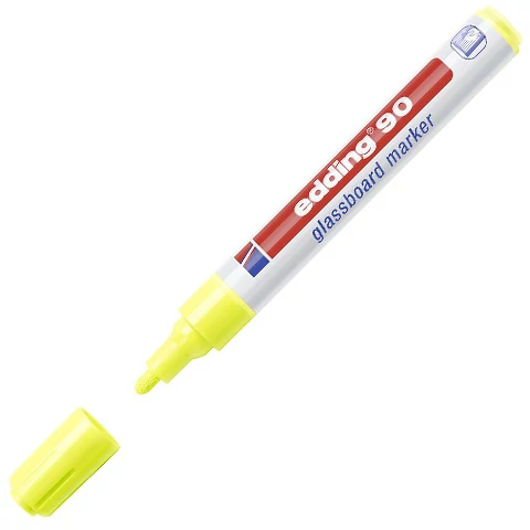 Az Edding 90 filckészletet kifejezetten üvegtáblákhoz fejlesztették, és most a hagyományos színek mellet lehetőség adódik arra, hogy élénk színekkel tegyük még átláthatóbbá a jegyzeteinket. Ez a citromsárga filc elég figyelem felkeltő ahhoz, hogy a segítségével a fontosabb részeknek nyomatékot adjunk, vagy a grafikonjainkat átláthatóbbá tegyük. A filc tökéletes választás üvegtáblákhoz, üvegfelületekhez és tükrökhöz. A filcet megrázva, a kerek hegyét néhányszor megpumpálva elérhetjük, hogy egyenletes 2-3 mm széles vonalat tudjunk húzni vele, ami gyorsan szárad, nem hagy zsíros filmréteget és szárazon egyszerűen letörölhető.