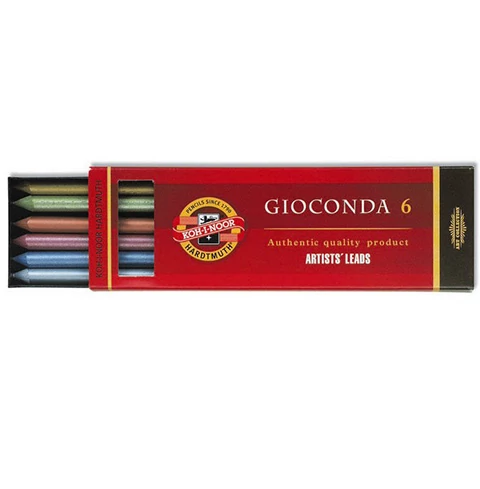 A Koh-I-Noor Gioconda művészeti metál színű grafit bél szett egy igazán különleges alkotás elkészítését teszi lehetővé. A készletben hat különféle színben találhatunk irónbélt, amelyek a több mint öt milliméteres átmérőjével nem csak rajzoláshoz remek választás, hanem a színezéshez is ideális. Az irónbél kellőképp puha anyagból készült, hogy megkönnyítse a hegyezést, és persze ez kedvez annak is, hogy megfelelő mennyiségben tapadjon a papírra, ezzel is élénk színeket eredményezve.