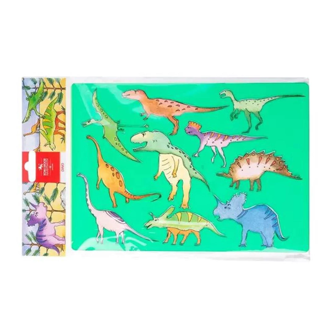 A sablon tartós műanyagból készült, amely hosszú távú használatot biztosít. Az aprólékosan kidolgozott dinóformák éles kontúrokat adnak, így a gyerekek könnyen használhatják. A különféle dinófajták mellett a sablon számos érdekes elemet tartalmaz, melyek még izgalmasabbá teszik a rajzolást és színezést.