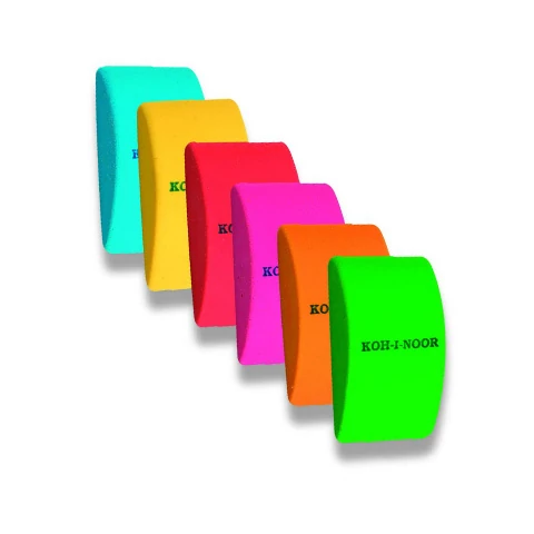 Anyagában színezett, színeinek élénksége semmiben sem befolyásolja a radír minőségét, mely hozza a Koh-I-Noor felirattal ellátott termékek minőségét.