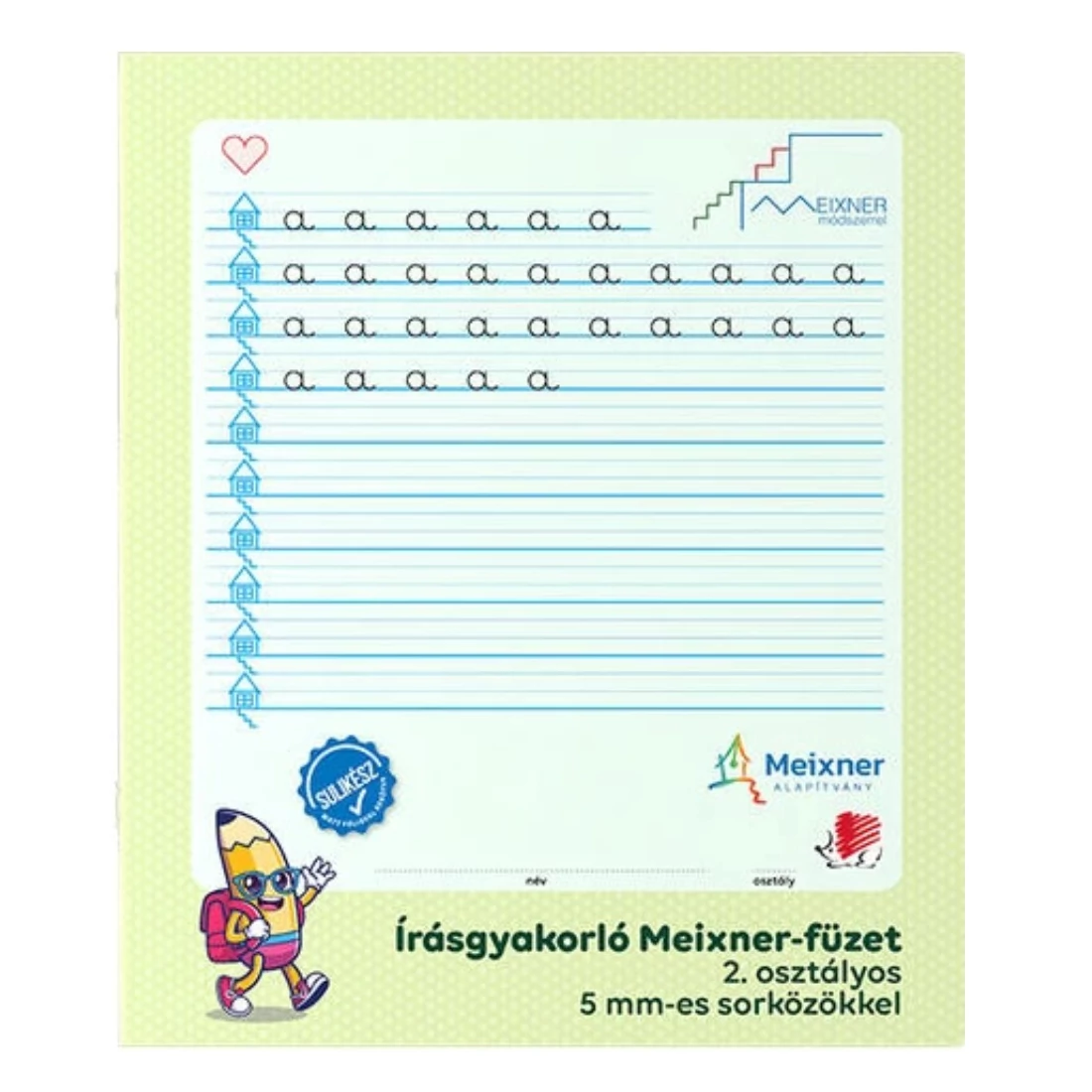 A második osztályos tanulók számára készült Meixner-füzet kiválóan alkalmas az íráskészség fejlesztésére és a betűformák finomítására. A kisebb, 5 mm-es sorközök segítségével a gyerekek fokozatosan haladhatnak a pontosabb, rendezettebb írás felé, miközben a jól ismert Meixner-módszer nyújtotta struktúra és vizuális iránymutatás segíti őket. A füzet bal oldalán megjelenő kis házikók és a karakteres, háromszintű vonalvezetés rendszert és magabiztosságot ad a gyermekek számára. A borítón szereplő kedves Süni figura tovább növeli a tanulás iránti motivációt.