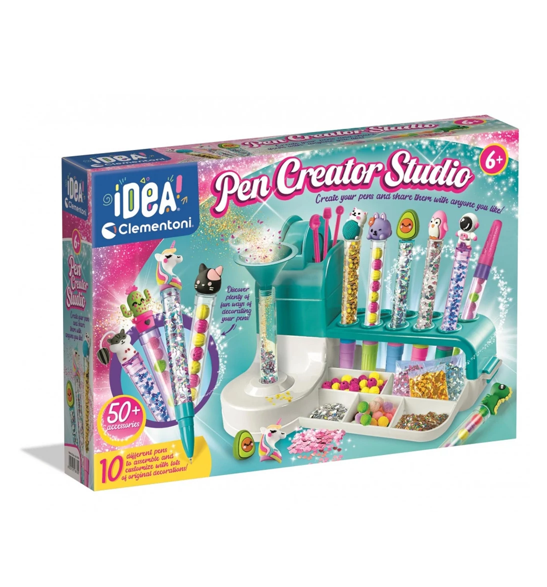 Ez egy eredeti kreatív laboratórium, amely lehetővé teszi a gyerekek számára, hogy saját színes tollakat készítsenek. Az új Idea készlet különleges élményt kínál, amely során a gyerekek személyre szabhatják saját tollaikat számos kiegészítővel és dekorációval. A készlet tartalmaz egy praktikus edzőasztalt és gazdag hangszerkészletet, amelyek segítenek a gyerekeknek felfedezni a kreativitás és művészi kifejezés világát.