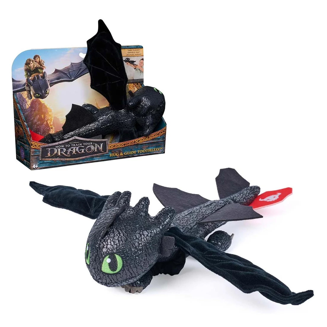 A különleges kialakítás révén Fogatlan könnyedén ráilleszthető a gyerekek alkarjára, így akár szerepjáték során, akár egy délutáni mesenézés közben is velük lehet. A filmből jól ismert részletgazdag megjelenés, a zöld szempár, a fekete pikkelyszerű textúra és a híres piros farokvitorla garantáltan elvarázsolja a rajongókat. Ráadásul a 40 cm-es szárnyfesztáv igazán lenyűgöző megjelenést kölcsönöz a plüssfigurának. Tökéletes ajándék minden Így neveld a sárkányodat-rajongó számára, akik saját sárkányt szeretnének a hétköznapokra.