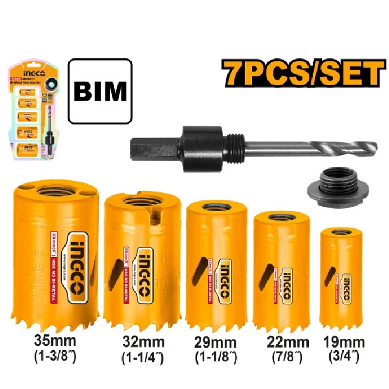 Méretek: 19 mm (3/4'), 22 mm (7/8'), 29 mm (1 - 1/8'),, 32 mm (1 - 1/4'), 35 mm (1 - 3/8')Adapter: 1/2' - 20', 5/8'~ 18'Orsó: 3/8“ befogó méret Szállítási terjedelem: 7 db bimetál körkivágó, 1 db adapter, 1 db orsó, bliszterben