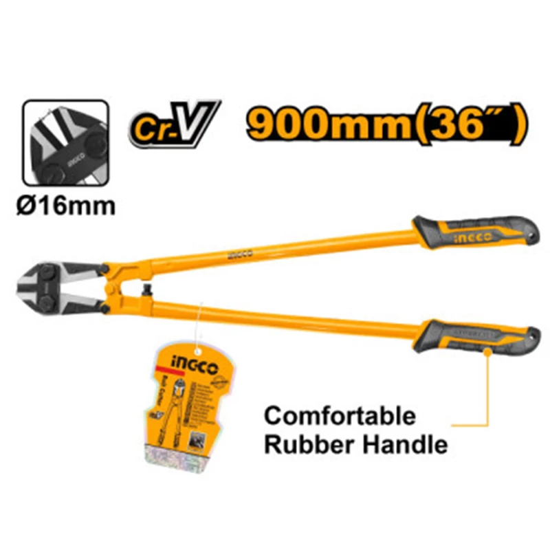 Fészer építési helyszín1. A pengéje CR-MO anyagból készült, amely magas keménységű, nagy szívósságú és nagy kopásállóságú.2. A penge éles, kopásálló és alacsony nyíróellenállású.3. Nagy szilárdságú szilárd csavarok, amelyekhez anti-lazító anyák tartoznak, mindegyik speciális hőkezelésen esett át.4. A fogantyú szorosan illeszkedik az ollófej testhez, ami szilárd és megbízható.5. A TPR háromszínű gumírozott fogantyú kényelmes fogást biztosít.Méret: 900 mm (36')Fekete oxid bevonattal, polírozott2 színű TPR markolat Szállítási terjedelem: 1 db csapszegvágó CrV, Papírkártya csomagolás