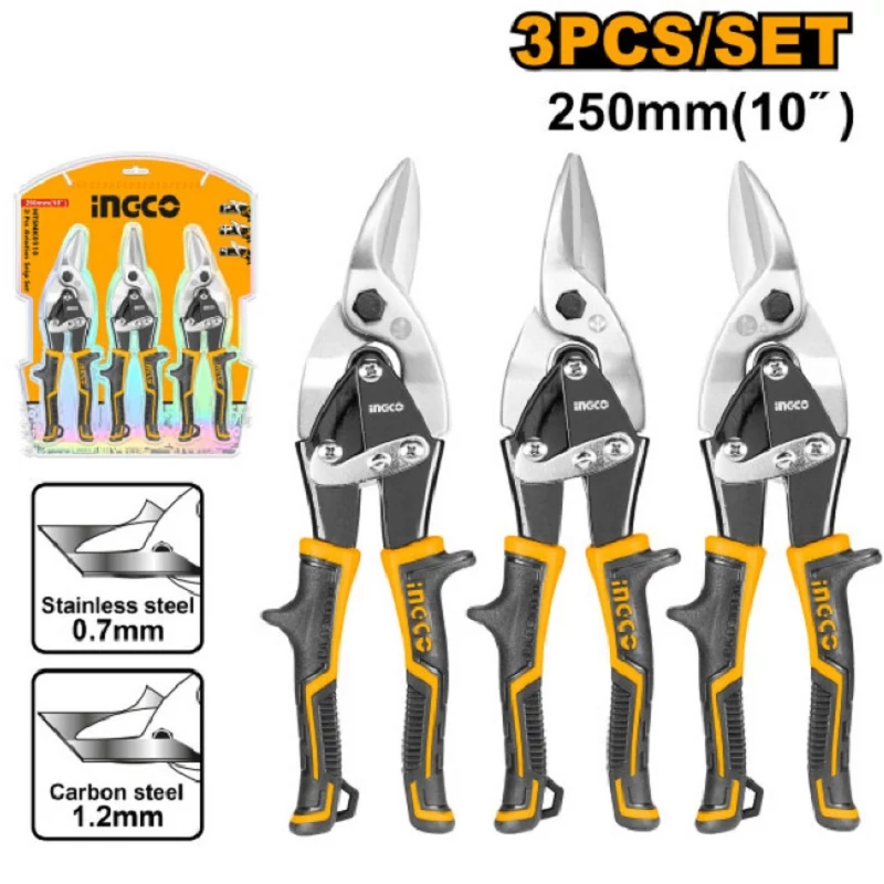 Alumínium lemezek, vaslemezek, rozsdamentes acéllemezek stb. vágására tervezveA pengéje króm-vanádium acélból készült, megmunkálva és nagyfrekvenciás kezeléssel ellátva. A penge oldala fogazott, hogy hatékonyan megakadályozza a levágott anyag elcsúszásátA TPR fogantyú kényelmes fogást biztosít Hossz: 250 mm (10')Max. vágás vastagság: Szénacél ? 1,2 mm, Rozsdamentes acél ? 0,7 mm Szállítási terjedelem: 3 db lemezvágó olló (bal, egyenes, jobb), bliszterben