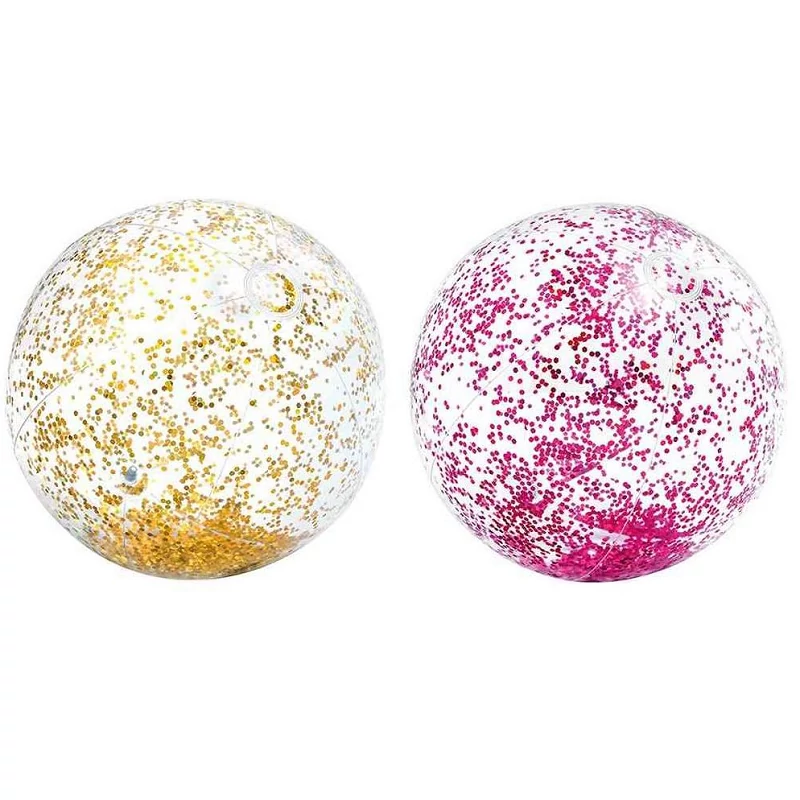Labdázzatok a medencében a csillogó strandlabdával! Az Átlátszó csillámos strandlabda egy aranyszínű, vagy rózsaszín felfújható labda, amivel a strandon, vagy a medencében is játszhattok. A labda biztonsági szelepen át fújható fel, dobáljátok, rugdossátok, és élvezzétek a játékot a napsütésben!