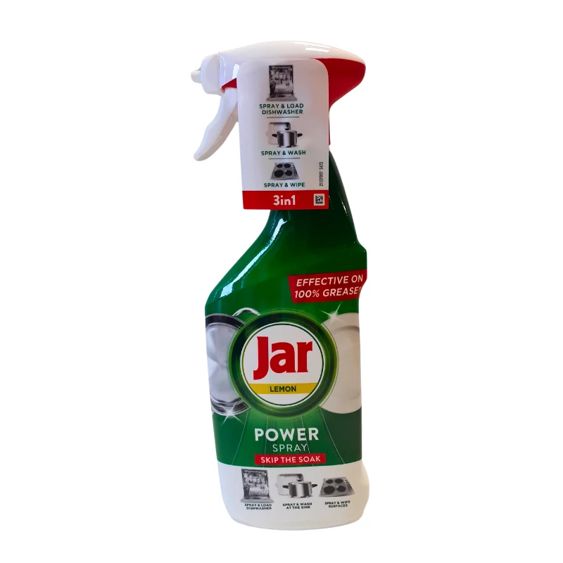 Eleged van az áztatásból és súrolásból? Íme az új Jar Power spray edényekre és konyhai felületekre! Hatékonyan elbánik akár a 100%-os zsírral is. A Jar Power spray könnyedén célba veszi a mindennapos szennyeződéseket. Használható gépi vagy kézi mosogatás előtt, valamint a konyhai felületek tisztításához is. Tisztaság és ragyogás erőfeszítés nélkül! A Jar Power spray elbánik a zsírral nemcsak az edényeken, de bárhol a konyhában. Új Jar Power spray. Elfújja a makacs zsírokat!