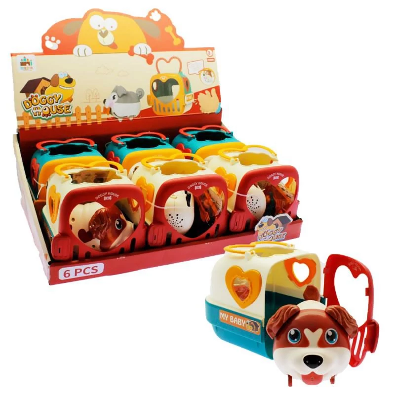 Játék állathordozó készlet elemes kutyával.