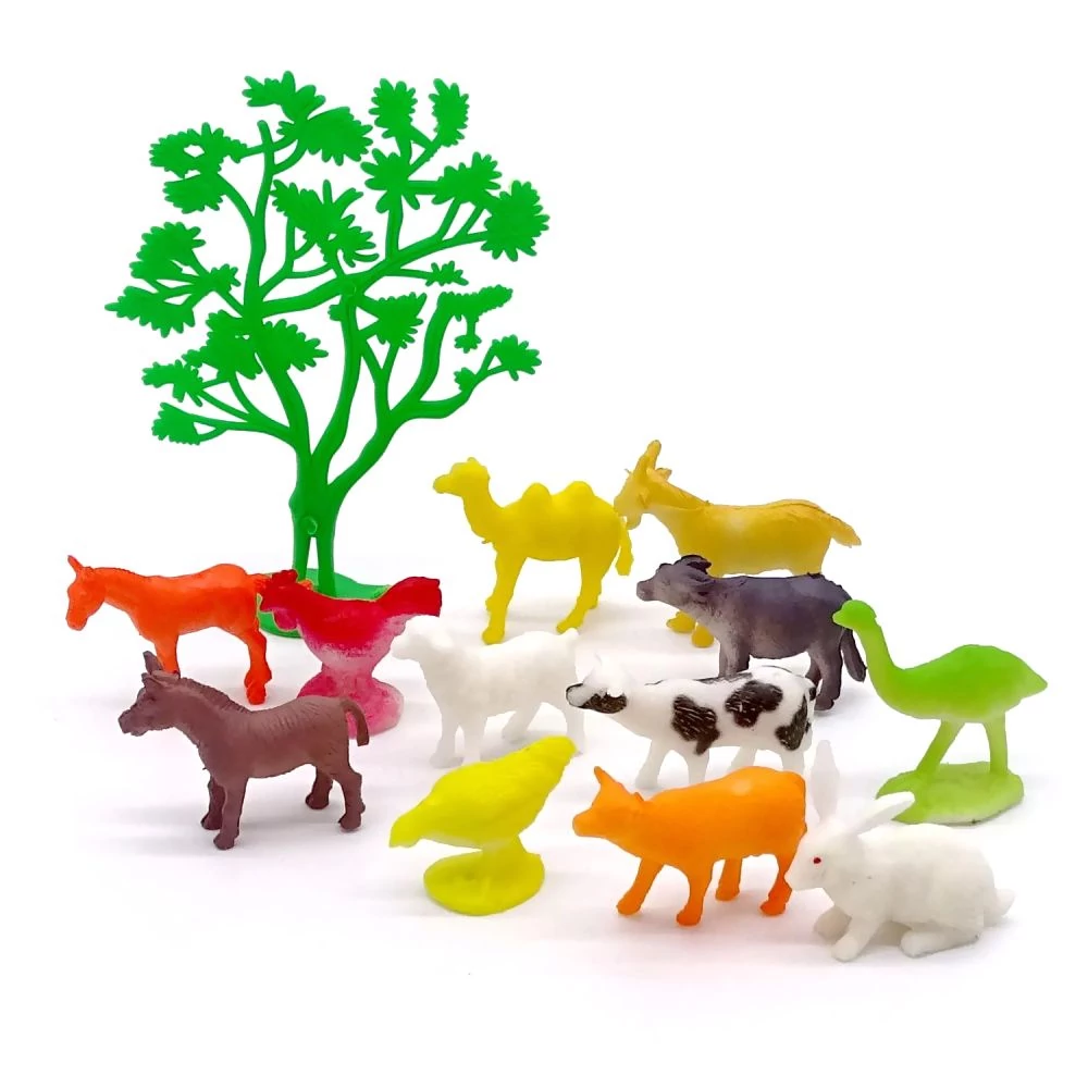 A csomag több fajta műanyagból készült állatkát tartalmaz mint pl: kutya, nyuszi, kakas, boci, szamár, ló, tehén. A csomagban található még egy fa is, mely műanyagból készült.