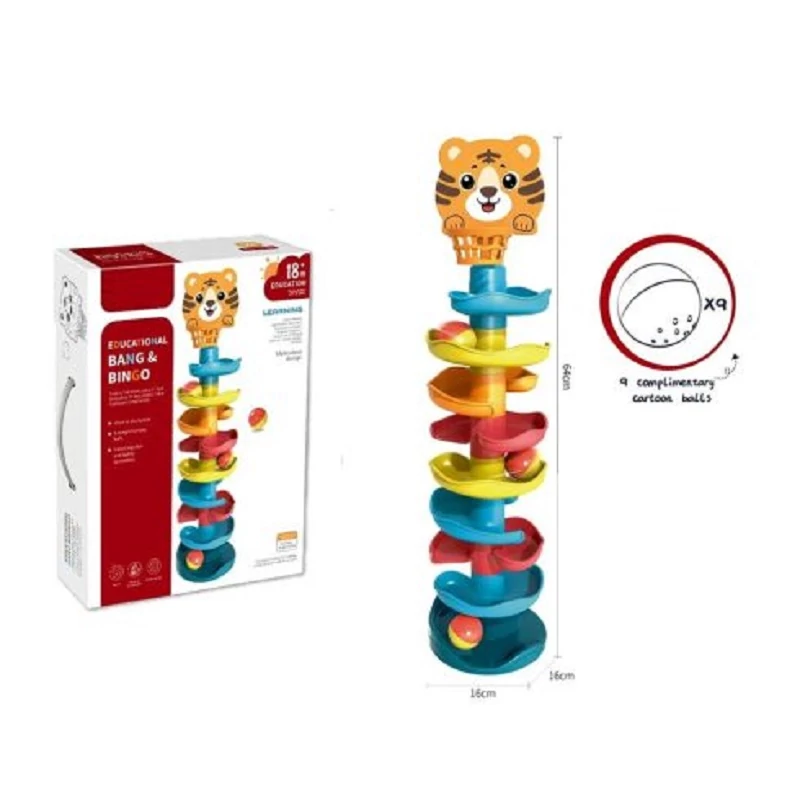 Kanyargós Utazás a Toronyban: Dobd fel a golyókat a tetején lévő kosárba, és figyeld, ahogy a golyók izgalmas útvonalon haladnak végig a tornyos pályán. Minden kanyar és forduló új meglepetéseket tartogat, melyek garantáltan lekötik a kicsik figyelmét!