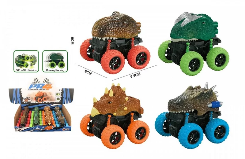 Fedezd fel a dinók izgalmas világát ezzel az egyedi, átfordulós autóval, melyen egy lenyűgöző dinoszaurusz figura trónol! Vidd magaddal őskori kalandjaidra, mert az autónk különleges mechanizmusa következtében sosem borul fel! A változatosságot garantálja, hogy ha az autó falnak ütközik, 180 fokot fordul és tovább száguld! Minőségi műanyagból készült, így strapabíró is, garantálva a hosszantartó szórakozást. A dinoszaurusz figura ragyogó színei pedig minden kicsi kalandor szívét megdobogtatják. Ne hagyd ki ezt a remek játékot - vidd haza a dinók világát a nappalidba és indulhat a hatalmas kaland!