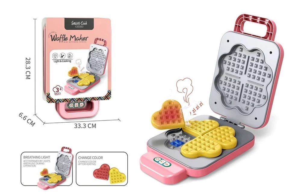 Most bővítheted játékkonyhád ezzel a fantasztikus gofrisütővel. Tedd bele a megadott formába a gofrit, zárd le sütőd majd nyomd meg a gombot és már készül is a finom reggeli! Az élénk pink színben pompázó háztartási gépnek mind a dizájnja mind a működése pont olyan mint az igazinak, így garantált a hosszas valósághű játék mely nem csak szórakoztató hanem tanulságos is a gyerekeknek.
