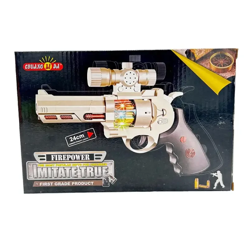 A pisztoly legjobb része? Amikor meghúzod a ravaszt, hallhatsz egy izgalmas hangot, láthatod, ahogy a tölténytár forog és még világítani is fog a tölténytárnál! El tudod képzelni, milyen móka lesz vele a barátaiddal játszani?