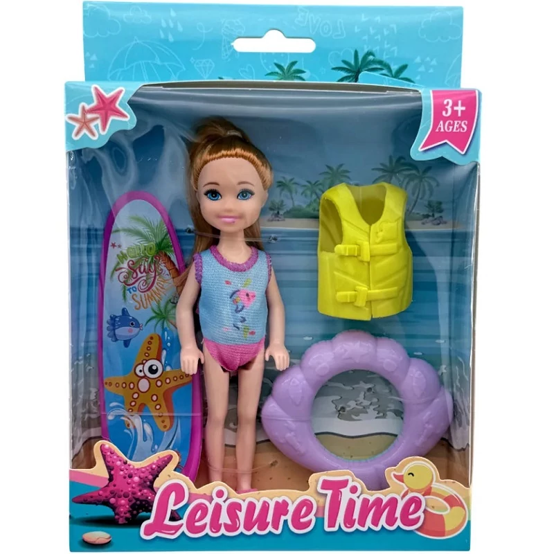 Ez a vidám Leisure Time fürdőző baba játékszett igazi nyári hangulatot varázsol a gyerekszobába! A csomagban található csinos baba készen áll egy izgalmas napra a vízparton, legyen szó úszásról, napozásról vagy vidám pancsolásról. A szettben úszógumi, mentőmellény és szörfdeszka is helyet kapott, így a játék még élethűbb és szórakoztatóbb lesz.