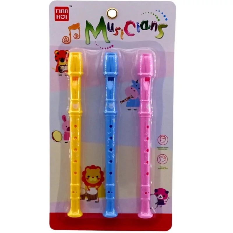 Itt az ideje, hogy megszólaljanak a vidám dallamok! Ez a 3 darabos furulya játékszett színes és szórakoztató módon vezeti be a gyerekeket a zene világába. A szett három különböző színű, 22 centiméter hosszú furulyát tartalmaz sárga, kék és rózsaszín árnyalatban, így egyszerre többen is játszhatnak, vagy lehet váltogatni a hangszereket hangulat szerint.
