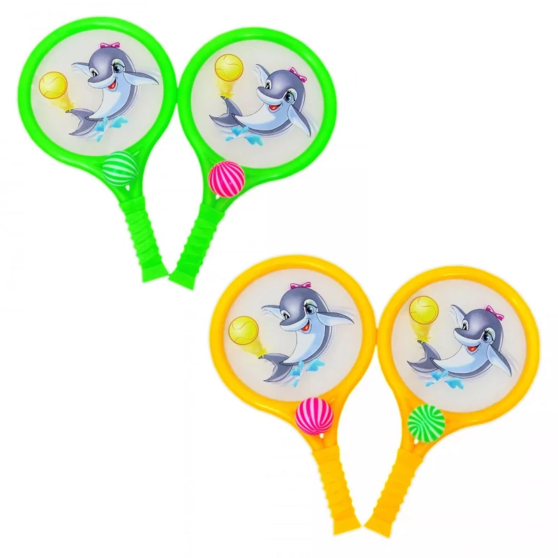 Ha unod a tollast és szeretnél valami hasonlót de újat kipróbálni akkor ez a konga ütő szett pont neked való! Hasonlóan kell játszani mint a tollast de tollaslabda helyett két kicsi színes labda van játékban és az ütök szolidak. Továbbá ez az ütő szett egy aranyos átlátszó delfines díszítéssel is rendelkezik!