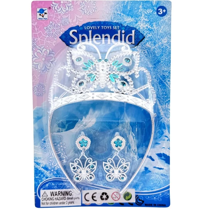 A szett része a hozzá illő fülbevaló páros is, amely tovább fokozza az elegáns megjelenést. A gyerekek egyszerűen csak felveszik a kiegészítőket, és már kezdődhet is a hercegnős játék, a fantáziadús szerepjáték vagy a saját kis csillogó divatbemutató. A csomagolás lapon érkezik, így nemcsak mutatós, de ajándéknak is tökéletes választás.