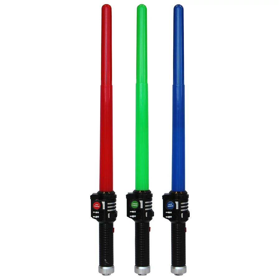 Lézer kard 61 cm-es változatban. A Laser kard a rajta lévő nyomógomb használatakor hang és fény effekteket játszik. Három féle színben létezik, melyet a készlet szerint véletlenszerűen szállítunk. (megjegyzésbe jelezzék a választott színt és amennyiben van készleten, akkor teljesítjük)