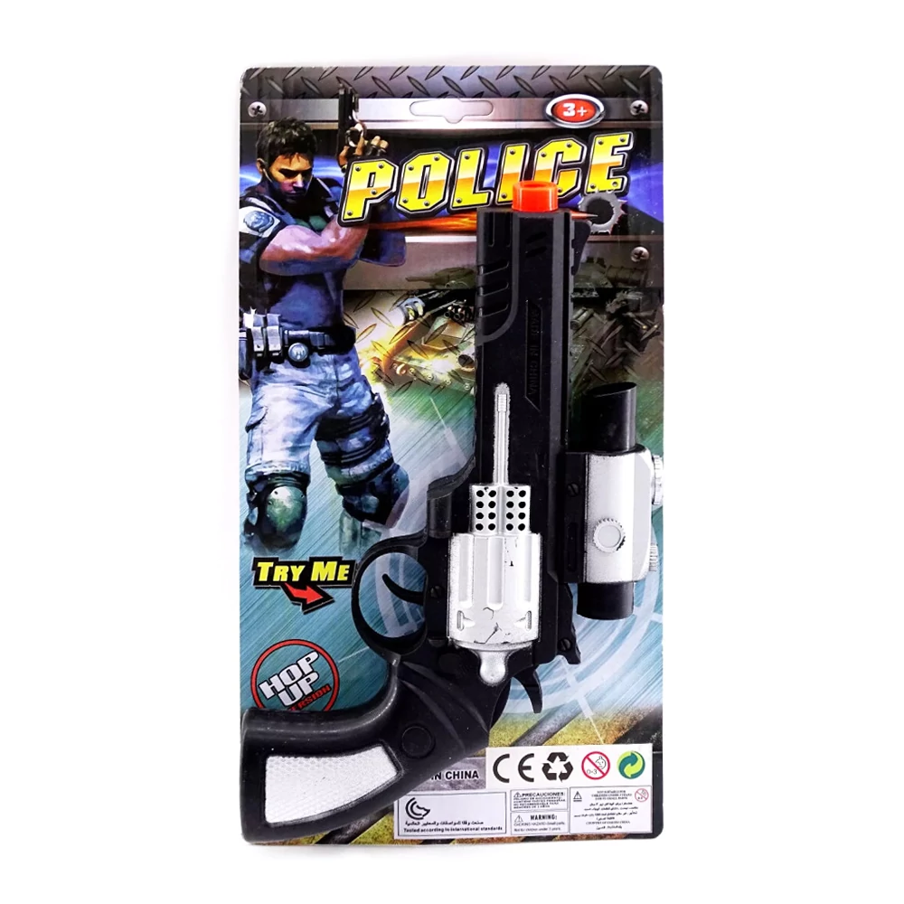 Könnyen hordozható pisztoly lapon mely különleges mechanikával van felszerelve. Minden kisfiú imád háborúsat, kalózosat, katonásat játszani, kiélve férfi hajlamaikat. Az összes géppuska, kard és más fegyver mellől nem hiányozhat ez a klasszikus sem. Bár a főfegyver a kedvence minden kis katonának, egy strapabíró mellékfegyvert is tudnak azért értékelni, általában egy pisztoly formájában. Eme impozáns fegyver használat közben még kattogó hangot is ad ki, új szintre emelve a nagy mókát!