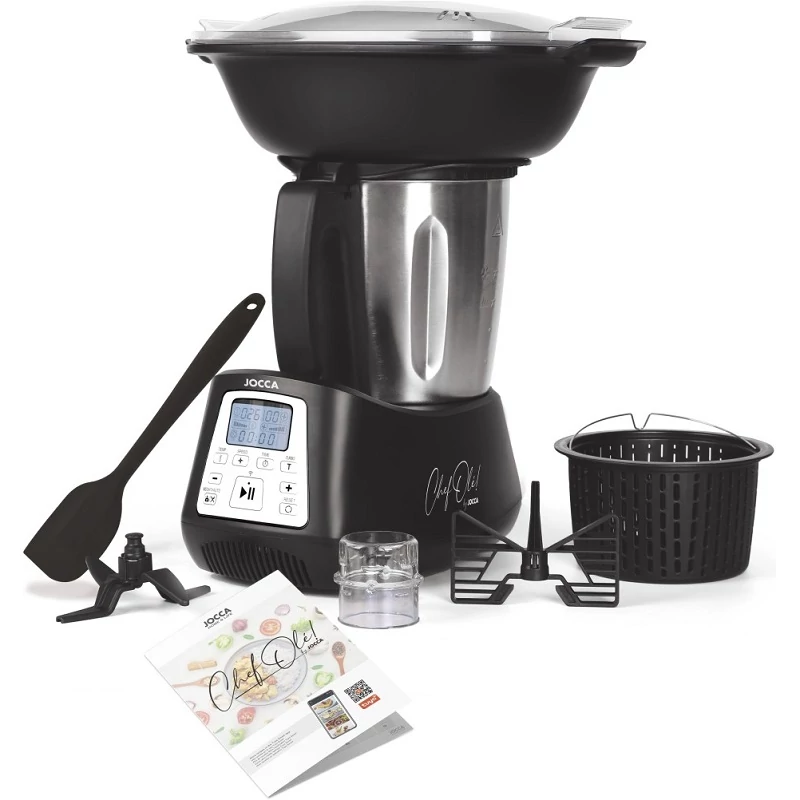 Élvezze a teljes menü elkészítését egyetlen készülékkel a Jocca 2145 multifunkcionális konyhai robotgépének köszönhetően, amely 12 funkcióval rendelkezik, többek között: mérés, keverés, aprítás, dagasztás, gőzölés, pirítás, emulgeálás, lassú főzés, olvasztás, darálás és zúzás. Emellett 10 beépített programmal, 10 sebességfokozattal, turbó funkcióval, integrált mérleggel, hőmérséklet-szabályozással, öntisztító programmal, Wi-Fi csatlakozással, 1200 W teljesítménnyel, 3,5 literes űrtartalommal és két gőzölési szinttel rendelkezik. A Jocca 2145 konyhai robotgép tökéletes társ számtalan finom étel elkészítéséhez, rozsdamentes acél keverőtáljában fogadja az összetevőket. Ideális levesek, szószok, turmixok, zöldséges ételek, hús- és tésztaételek, halak, lekvárok, süteménytészták és sok más elkészítéséhez. Néhány példa arra, hogy mit főzhet a Jocca multifunkciós robotgéppel 4 fő részére: guacamole, sütőtökös krém, pesto szósz, tőkehal ratatouille-val, marhapörkölt rizzsel, vegetáriánus kuszkusz, tojáskrém, tiramisu keksszel és eper-rebarbaralekvárral.