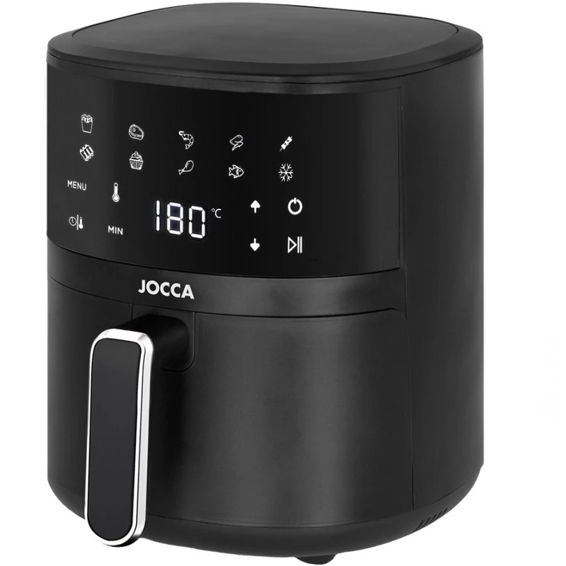 A Jocca 2219P 4L-es légkeveréses fritőzzel egészségesebb ételeket készíthet kevesebb olaj felhasználásával: kevés olajjal, vagy nélküle akár készülhetnek az ínycsiklandó ételek, mindössze néhány perc alatt. Ne mondjon le a sült ételekről! Gyorsan és egészségesen süthet, piríthat, gratinálhat, melegíthet és kiolvaszthat mindenféle ételt. Ezenfelül modern és felhasználóbarát kialakítású érintőképernyővel rendelkezik, 9 programozható beállítással, hogy a különböző ételeket a kívánt sütési fokozatra készíthessen el. És amikor elkészül... magától kikapcsol. Nyugodtan hagyhatja főzni, miközben ön az egyéb feladataival haladhat előre párhuzamosan. Hűvös tapintású fogantyújának köszönhetően biztonsággal kezelhető használat közben. Tisztítása is nagyon egyszerű:csak vegye ki a fiókot, és tisztítsa meg a kosarat, amit kivehető rács is támogat. Ne felejtse el letölteni a receptkönyvet exkluzív receptekkel!