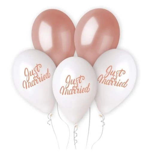 Lufi, Just Married felirattal. Fehér és rose gold színekben, vegyesen csomagolva, 32 cm átmérő.