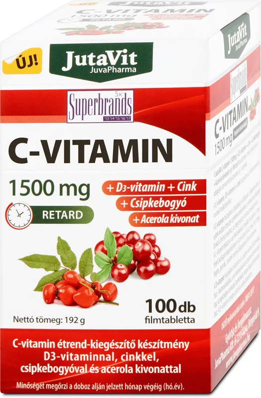 JutaVit C-vitamin 1500 mg filmtabletta + acerola-kivonat + csipkebogyó + D3-vitamin + cink 100db