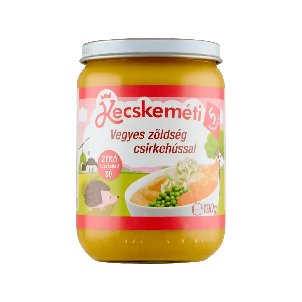 - A Kecskeméti vegyes zöldség csirkehússal 5 hónapos kortól javasolt. A menü fedezi a baba megnövekedett fehérjeszükségletét, biztosítják a vérképzéshez nélkülözhetetlen vasat.
