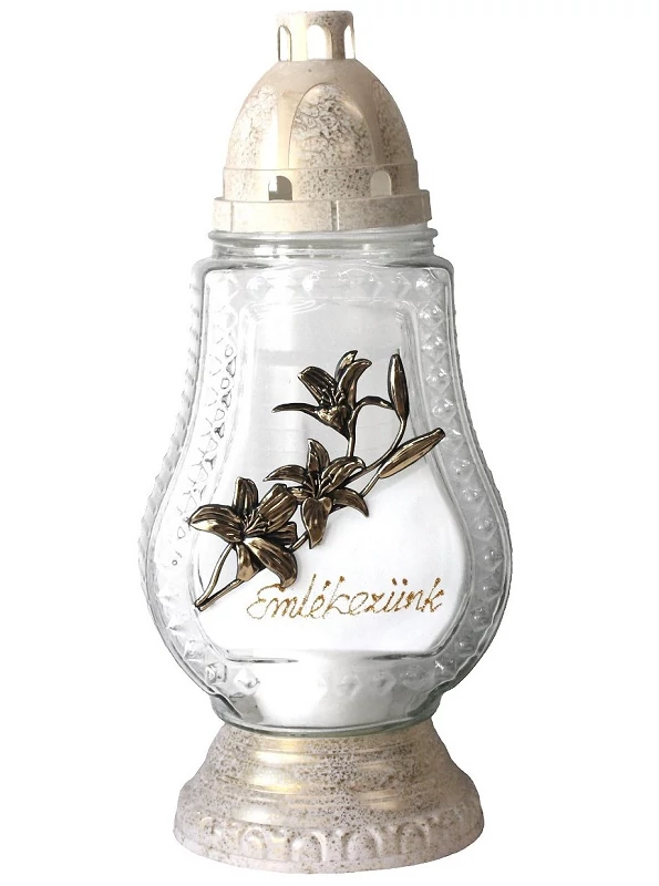 Kegyeleti mécses fehér-arany liliomos, felirattal 34,5cm RZ-57 B
