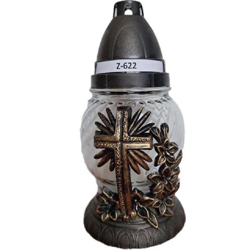 Kegyeleti mécses keresztes díszítéssel 20cm Z-622