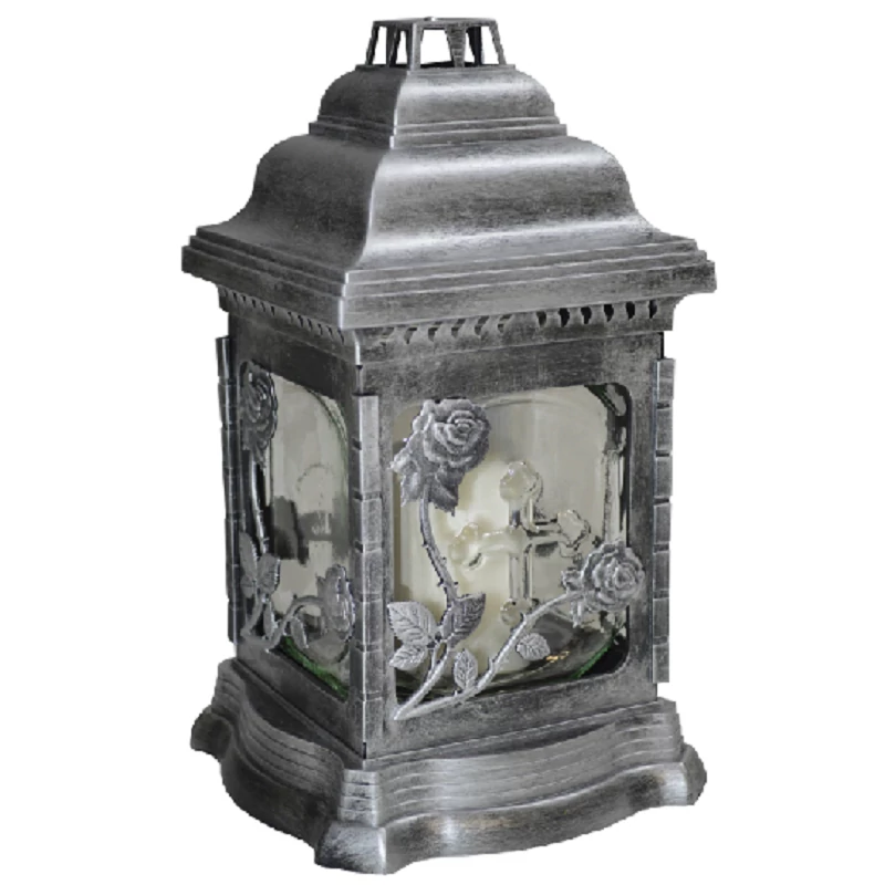 Kegyeleti mécses szürke színben virágos mintával négyszög alakban LA 207 KAT RO