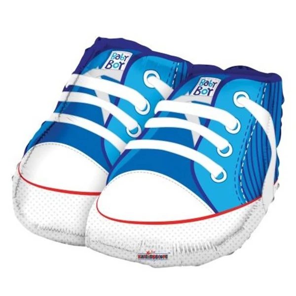 Különleges babacipő formájú fólia lufi kék színben. Levegővel és héliummal egyaránt fújható, önzáró szeleppel. Nagyméretű. Mérete 45 cm.