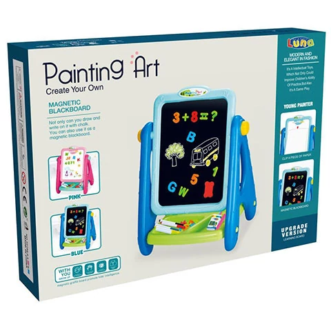 Ez a vagány rajztábla egészen biztos, hogy a gyerekek kedvence lesz, hiszen a szobában felállítva, bármikor nekiállhatnak rajzolgatni, vagy gyakorolni az írást, esetleg a számolást. A tábla teljes magassága alig több mint negyven centiméter, így akár a földön felállítva, akár az asztalra helyezve lehet rajta dolgozni. A tábla egyik fele fehér, amire a letörölhető filcekkel lehet rajzolni, míg a másik fele fekete, ahová a hagyományos krétákkal lehet gyakorolni a betűket vagy a számokat. A készletben színes letörölhető filcek, mágneses betűk és számok, illetve hagyományos kréták is találhatók.