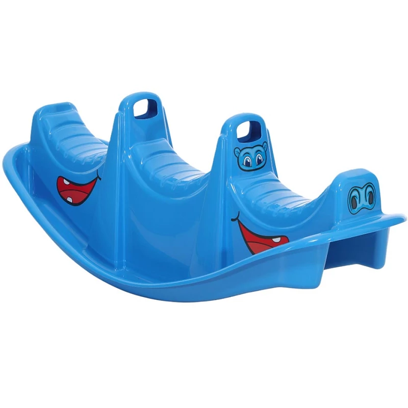 Ez a vidám, kék színű libikóka garantáltan minden kisgyerek kedvence lesz! A mókás, mosolygós mintákkal díszített játék három kényelmes ülőhellyel rendelkezik, így akár egyszerre három gyermek is hintázhat rajta, közös örömet szerezve egymásnak. A libikóka élénk színe és aranyos mintái azonnal felkeltik a kicsik figyelmét, miközben a hintázás fejleszti az egyensúlyérzéket és a mozgáskoordinációt.